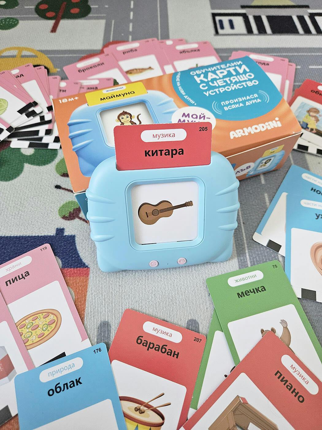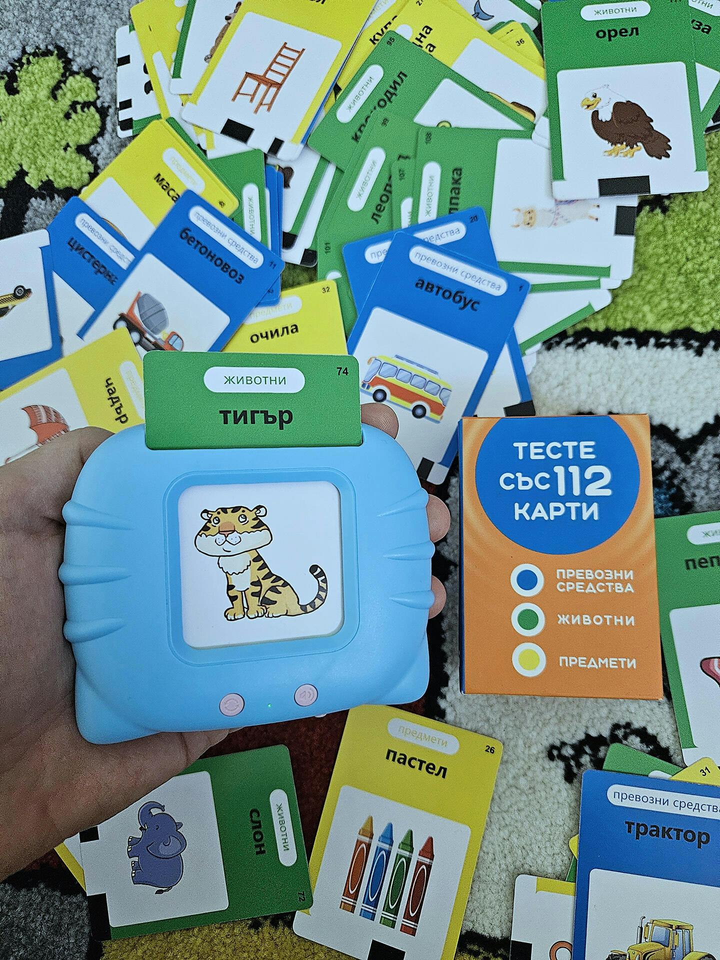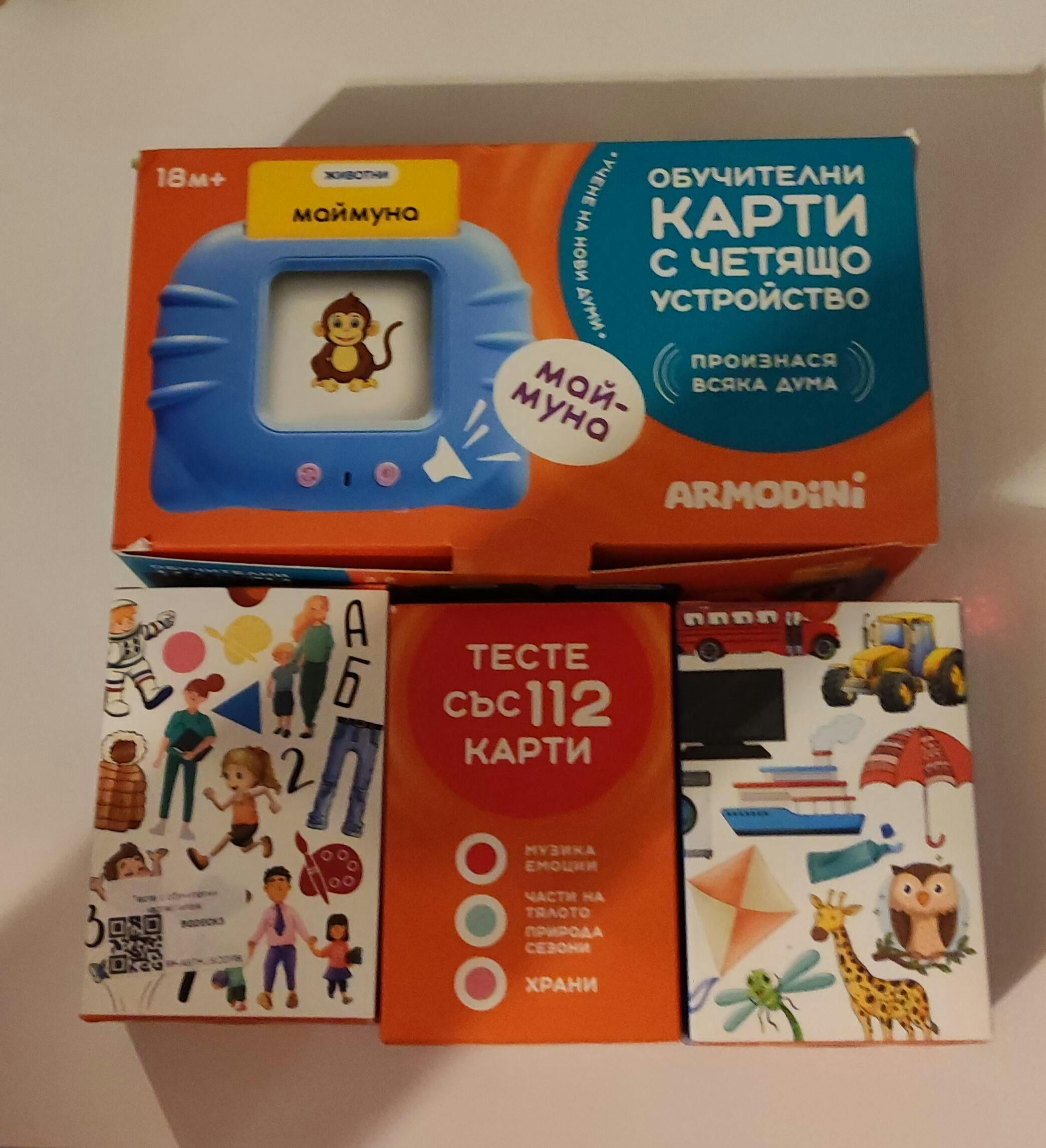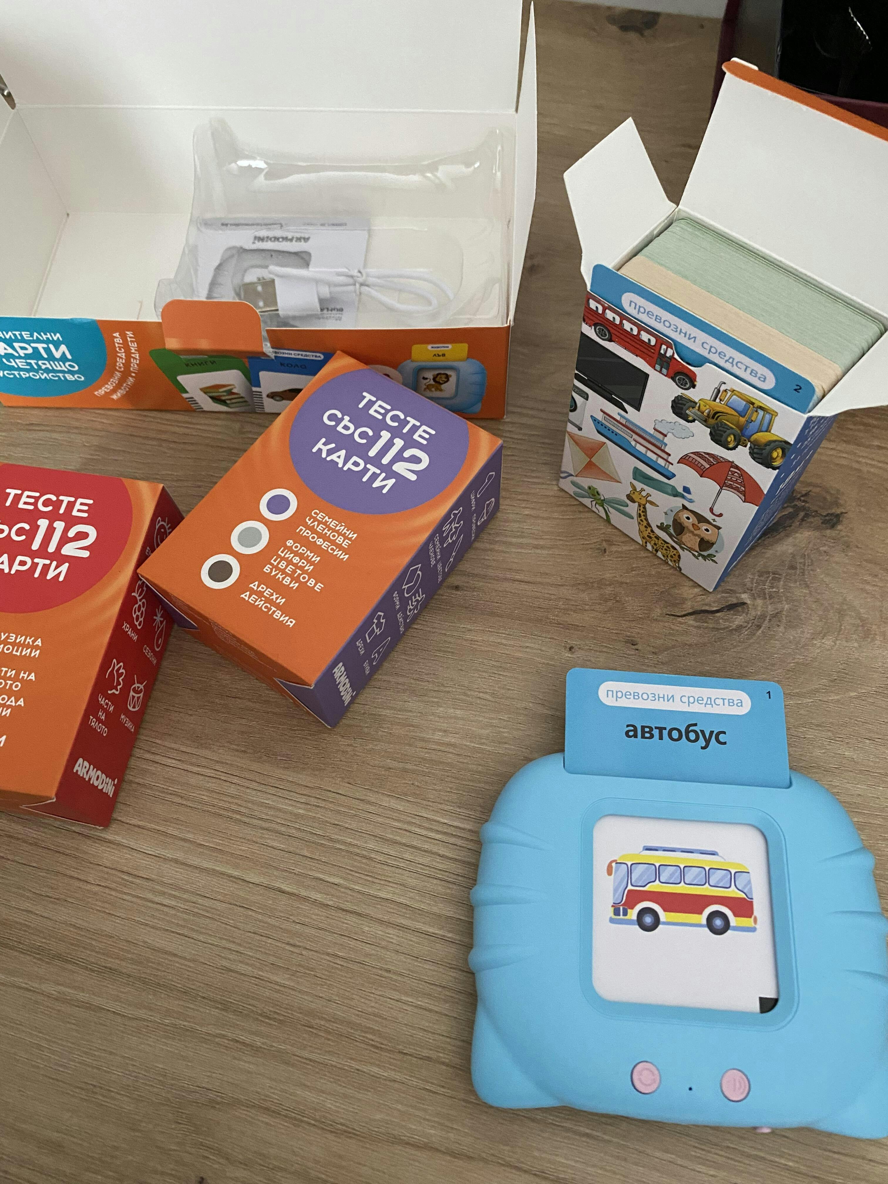 Устройството е невероятни както и подбора на картите,получихме ги като подарък от майка ми.За първи път нещо задържа вниманието на детето ми с часове,едновременно му е интересно,забавно,но и полезно.Със сигурност ще закупя и останалите тестета с карти.